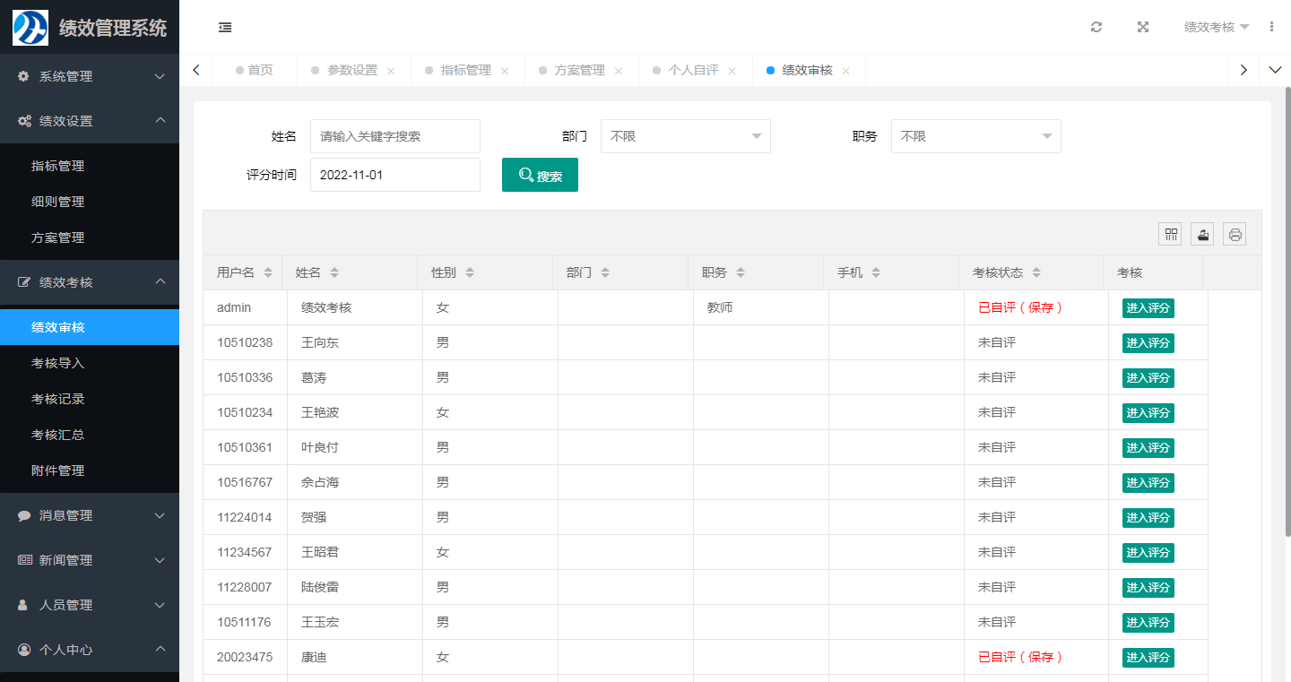 1、系統(tǒng)實(shí)現(xiàn)兩級考核,個(gè)人自評+單位審核;